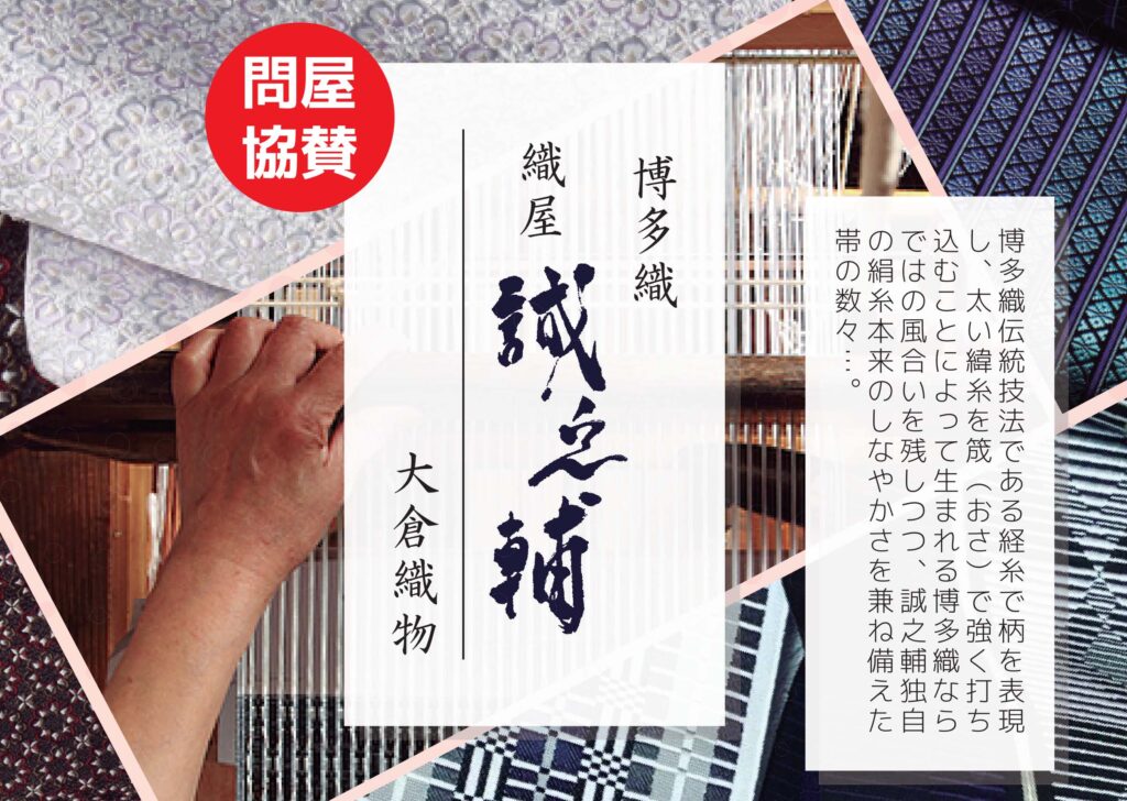 問屋協賛規格では、博多織ー大倉織物「誠之輔」の帯を多数取り揃えております。また、特別企画として「おしゃれ半衿詰め放題」、「低反発草履&選べる花緒」、「秋の和装小物フェアー」を開催いたします。特集として「おしゃれ着尺」を開催、ちゅおっとしたお出かけやカジュアル・フォーマルにも活躍できる小紋、お出かけに不可欠な羽織りやコートなど幅広くご利用いただけるおしゃれ着尺を取り揃えております。是非、この機会をご利用ください。