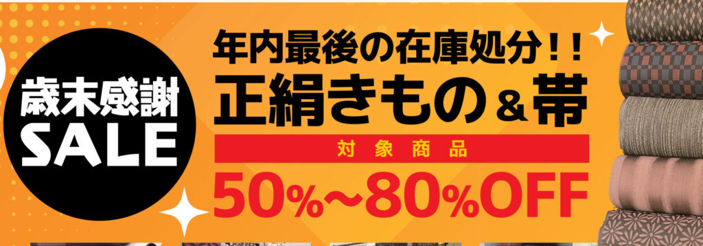 歳末大感謝祭 2025-12-13 最終更新日時 : 2025-12-13 y-kobayashi@wasou-yoroduya.jp 開催日: 2025-12-18 - 2025-12-20カテゴリー: 催事(いわき店) 年内最後の在庫処分!!1年間の感謝の気持ちを込めて、対象の正絹きもの・帯を50%~80%OFF! 和装小物処分市も開催します。ぜひこの機会をご利用ください。